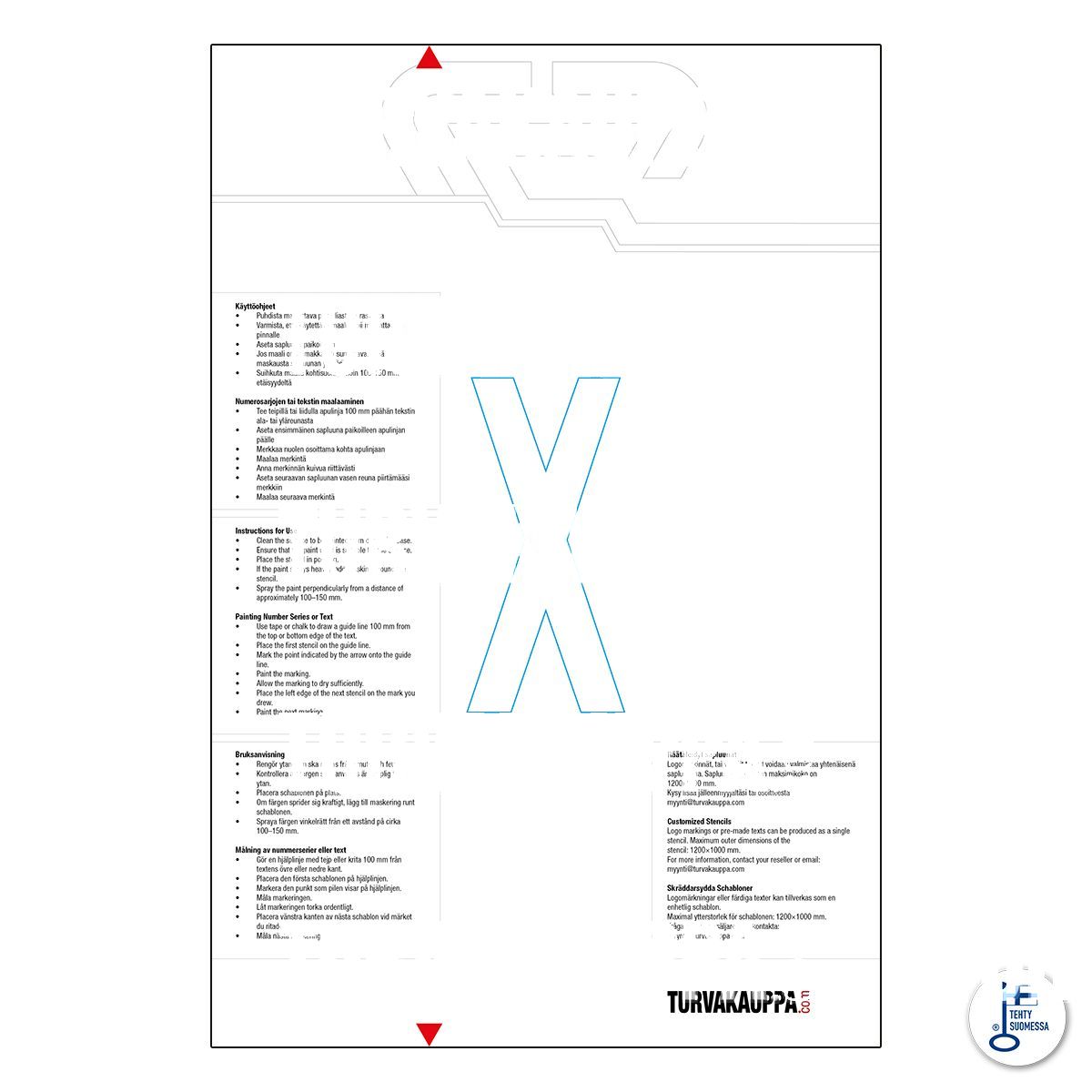 - Tuotepolku Etusivu Kyltit ja opasteetKerros- ja talonumerot, irtokirjaimet ja -numerot Kirjainsabluuna 100 mm - X